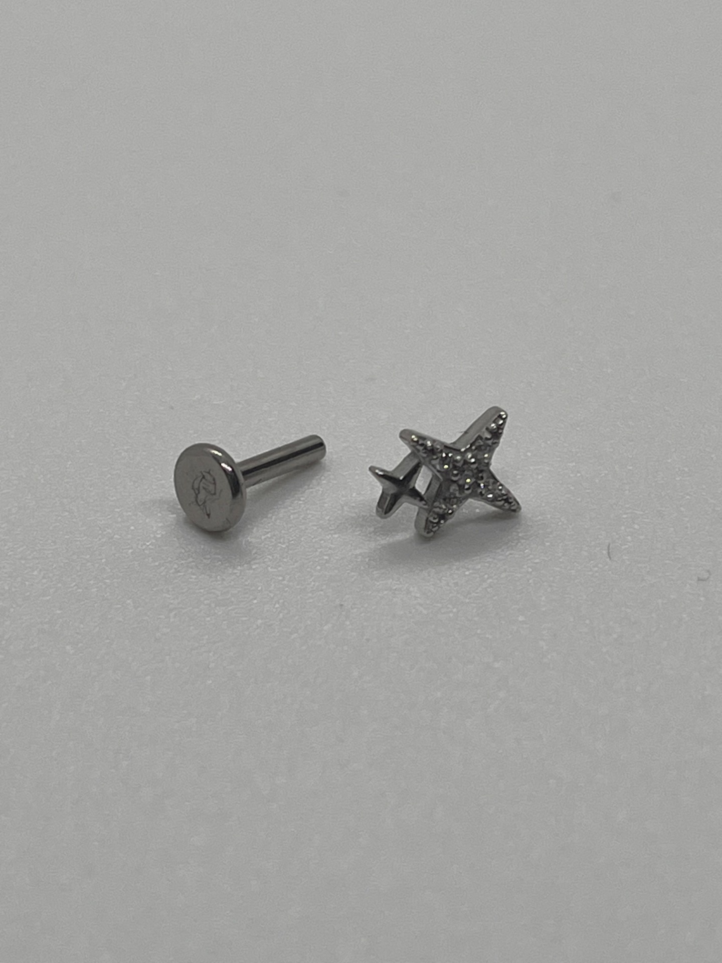 Bezzávitový piercing Dvojhviezda - strieborný vzhľad, 6mm (push-in/threadless)