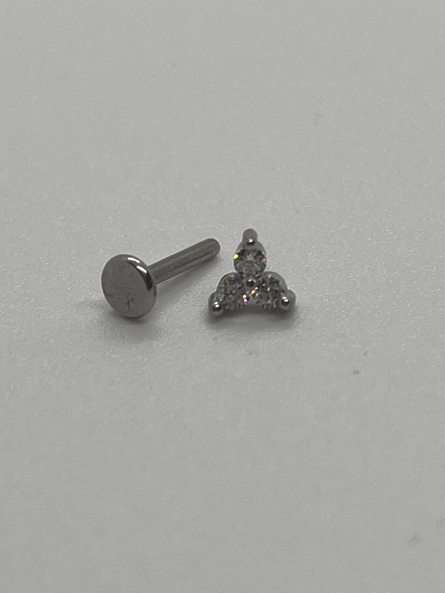 Titánový piercing Mini Trojlístok (threadless/push-in), 6mm aj 8mm, strieborný/zlatý vzhľad