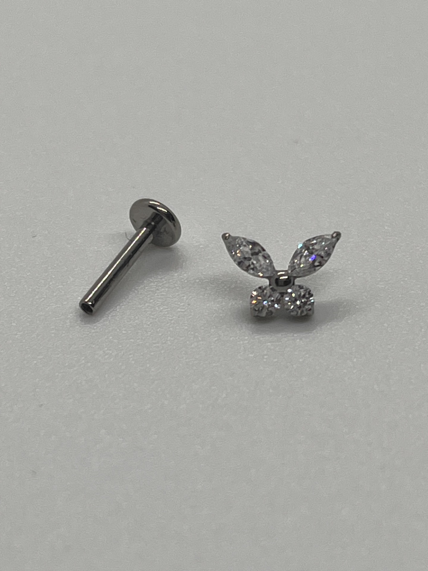 Titánový piercing Motýľ s kamienkami - závitový, 6mm/8mm, strieborný/zlatý vzhľad