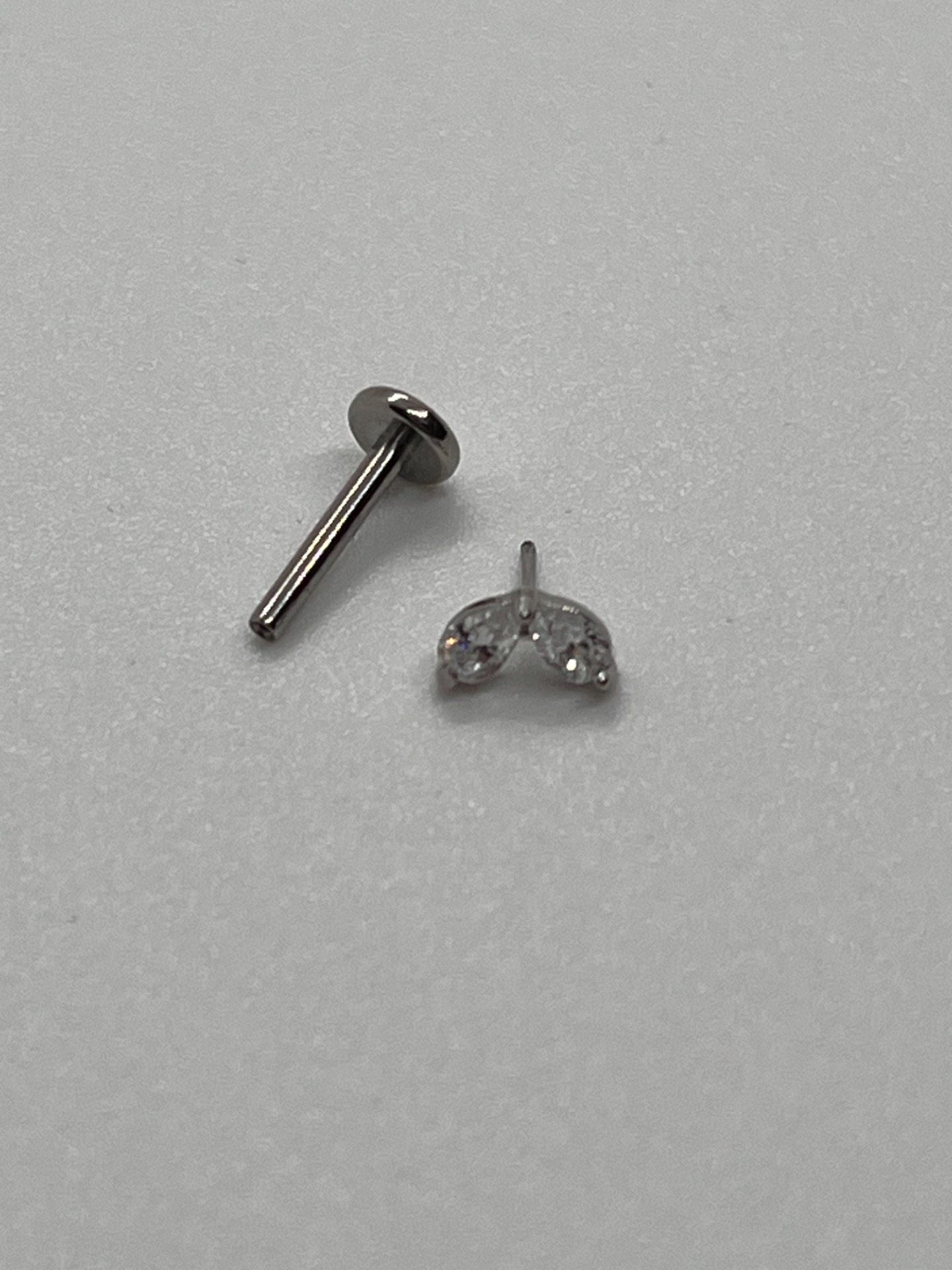 Titanový piercing Dvojlístok s kamienkami - push-in(threadless), 6mm/8mm