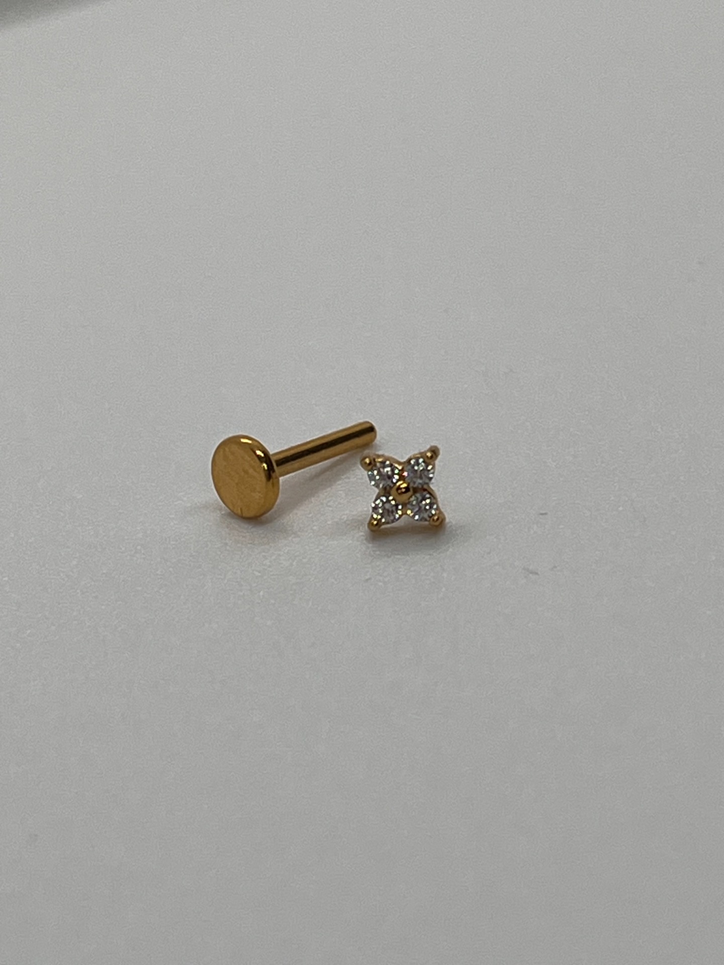 Titánový piercing Crystal Clover – push-in (threadless), 6 mm / 8 mm, strieborný alebo zlatý