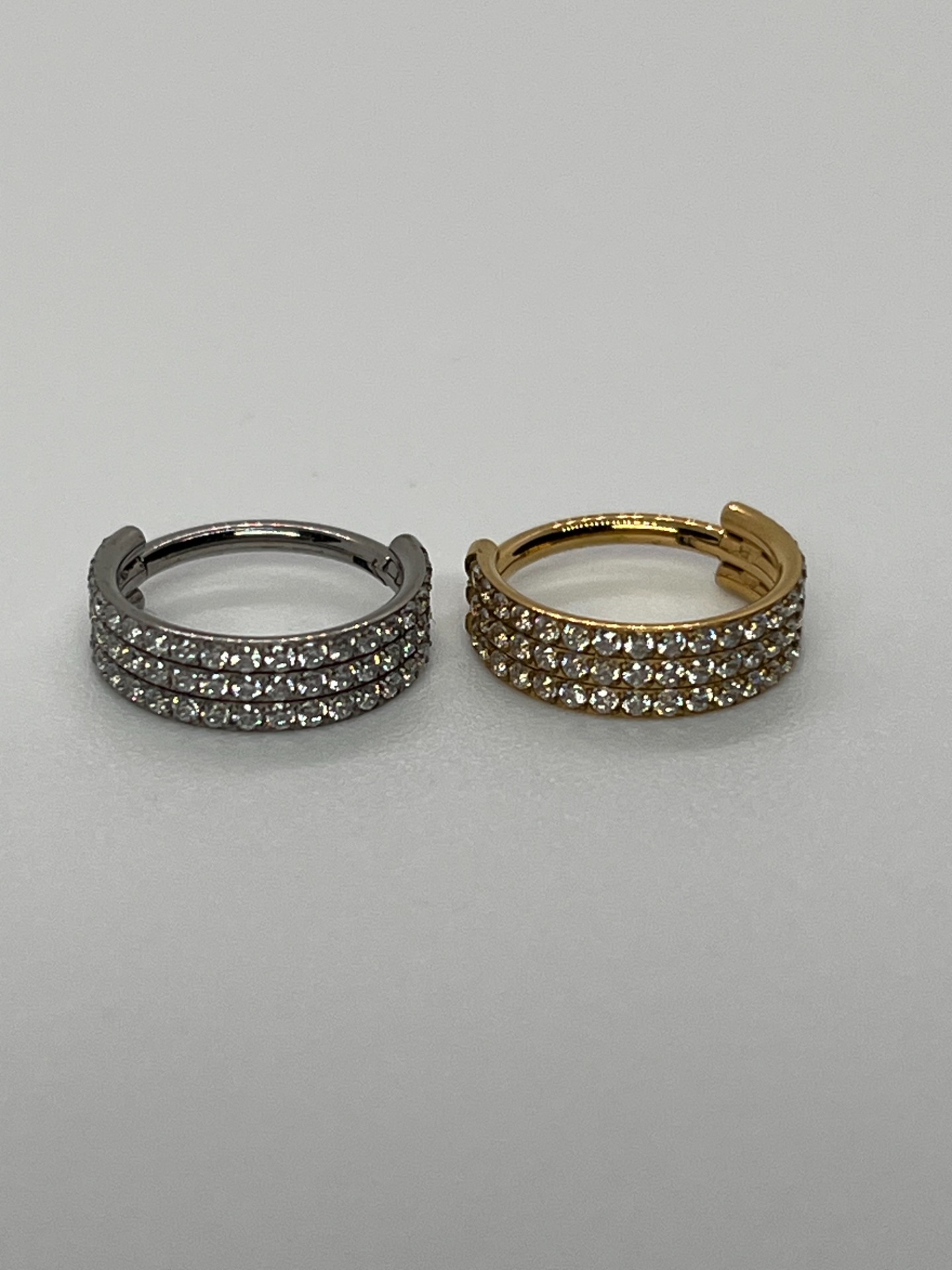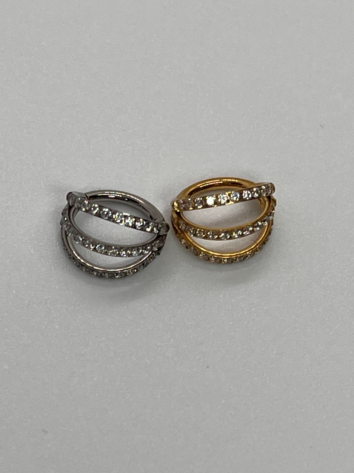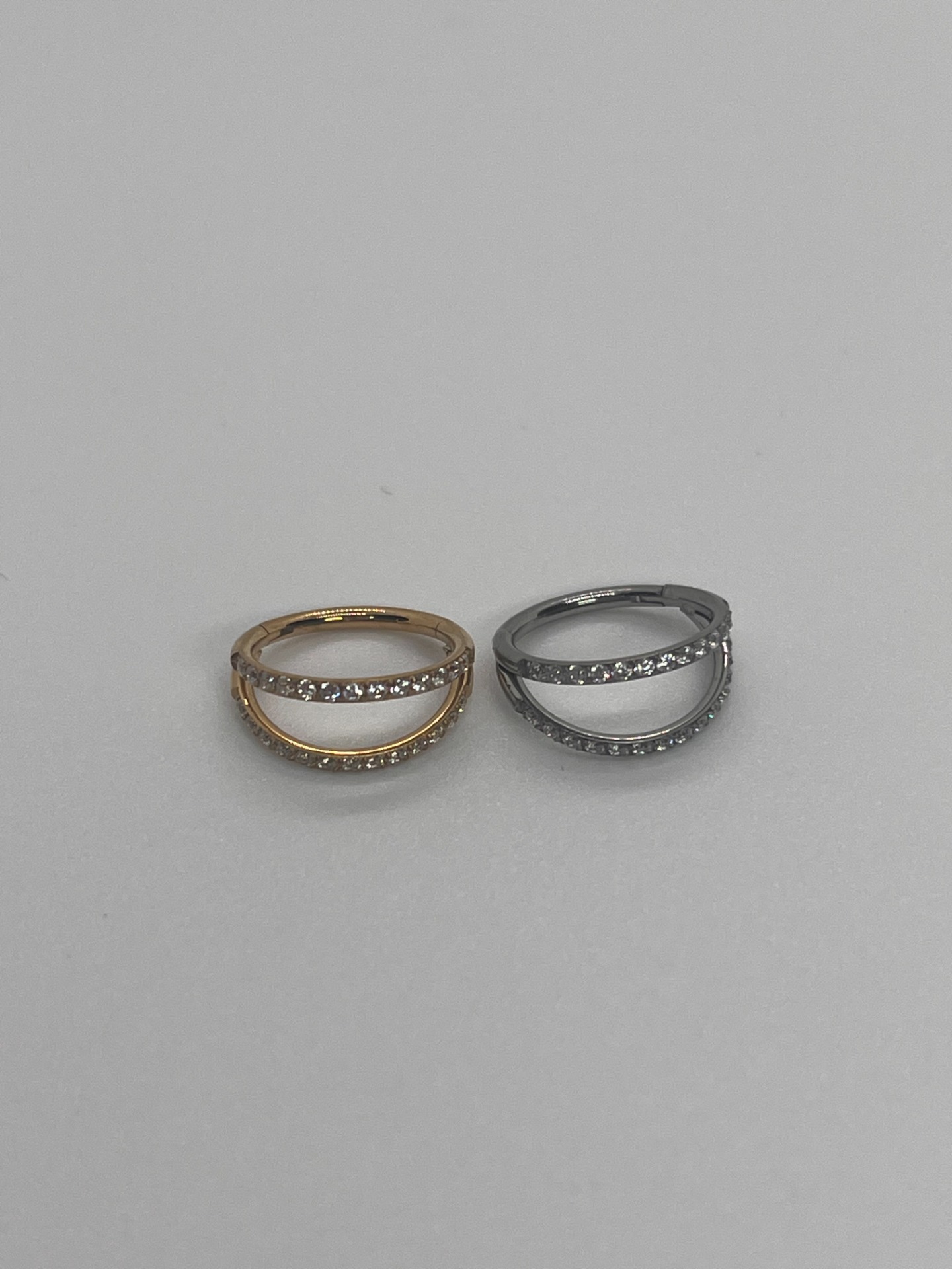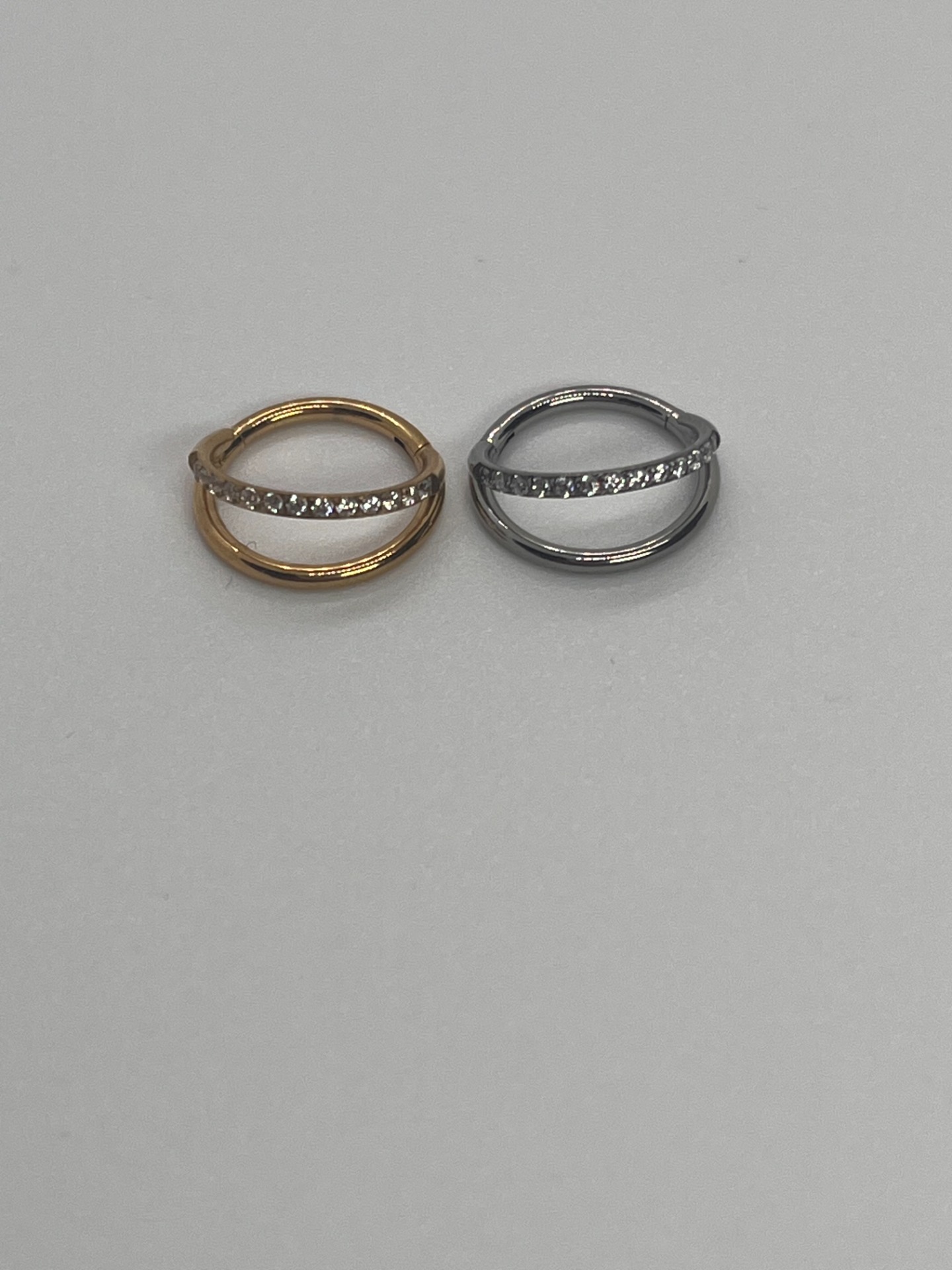 Double Ring Sparkle - titánový šperk, 8mm, 10mm, strieborná/zlatá varianta, s kamienkami po oboch obručiach 15,00 € 0,00 €